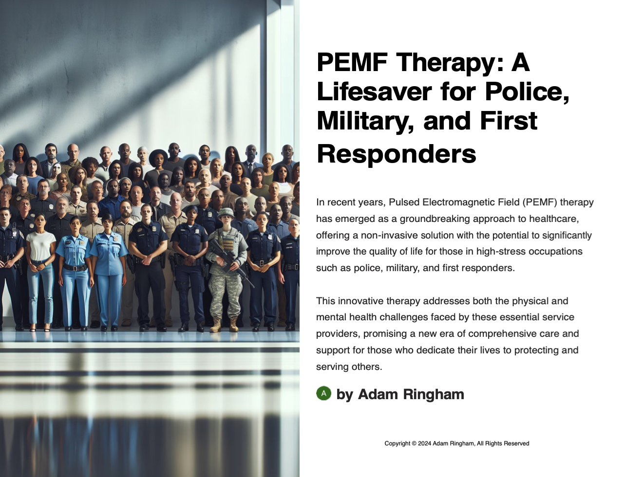 PEMF Therapy – A Lifesaver for Military Police and First Responders, 27pp booklet